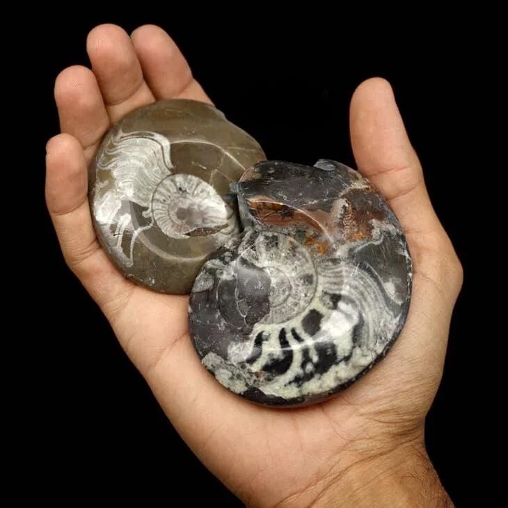 Multi Fossil Stone Carved into Ammonite Shape 2-4in | Morocco